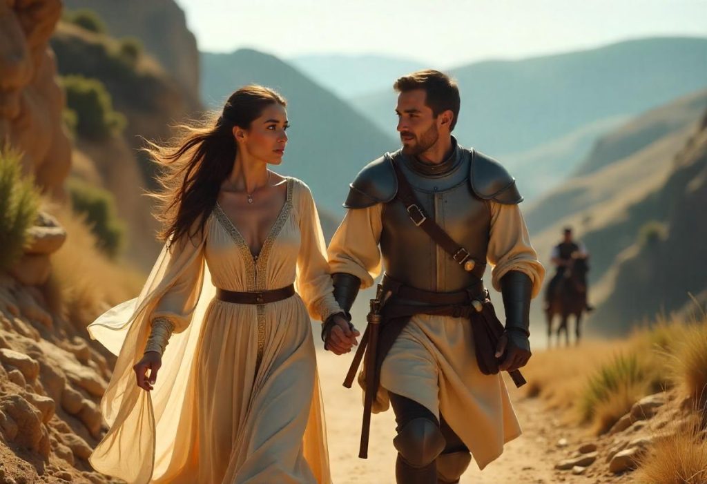 En una madrugada silenciosa, los jóvenes huyeron de la ciudad. Sin embargo, la noticia de su fuga llegó rápidamente al padre de Tazgona, quien organizó un batallón para perseguirlos.